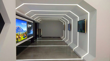 我们通过对现场实际情况考察,面积大小,以及实现的功能和需求,给甲方多次沟通协商后,最终确定采用美国Control4智能控制系统.对整个展馆的灯光进行了场景的控制,电脑也进行了开关的控制,在入门口我们设置一个场景面板,照明全开场景、电脑全开场景、展馆全开场景、离开场景等。项目除了对整个展厅灯光做了智能控制,扩音设备、安防监控、视频系统也进行了集中的控制,无论是面板、手机、触控屏都可以一键控制整个展厅。